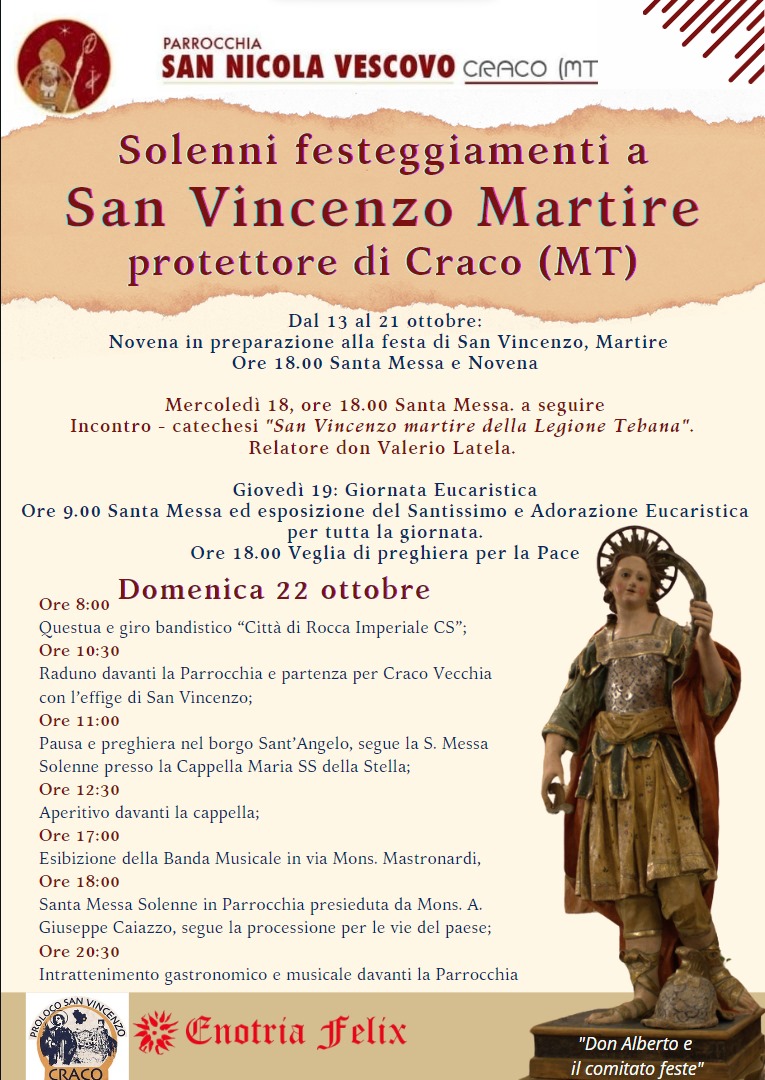 22 Ottobre 2023 - SAN VINCENZO MARTIRE protettore di Craco